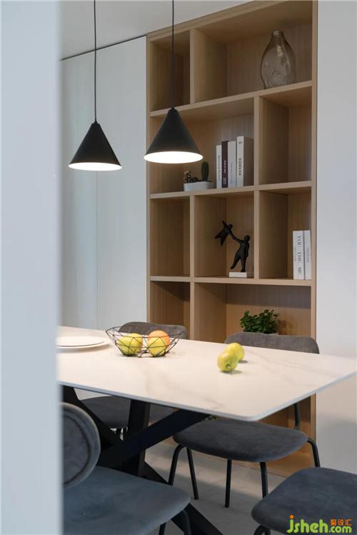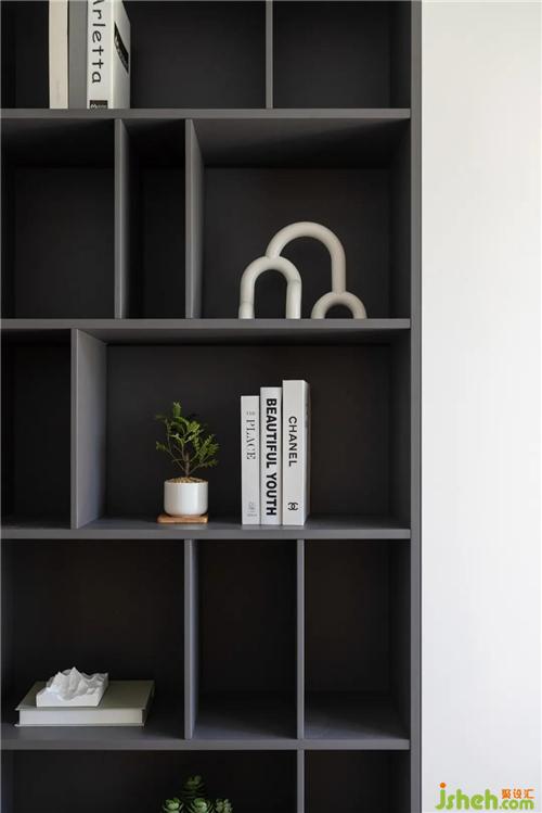 开放式的柜子除了能当成书架,摆放些艺术品也是不错的选择。