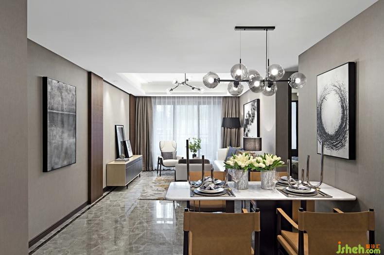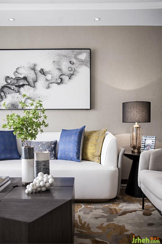 空间中饰以后现代抽象艺术装饰画,与几何形制家具、别致灯具相互呼应,以生活的艺术态度,脱离藩篱,营造出别具一格的空间气质,个性、雅致、内在文化浓郁。