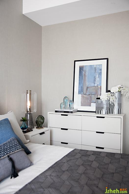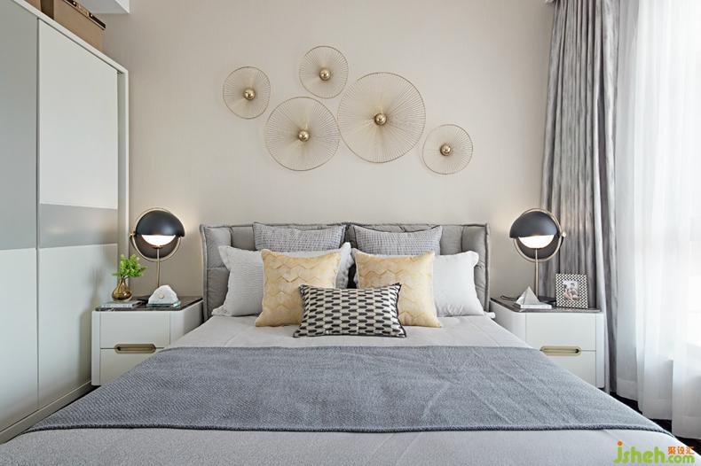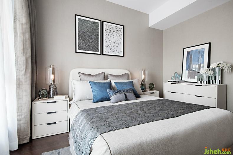 主卧延续空间的一贯色调,尽显清新淡雅,艺术装饰画抽象大气,彰显高品味的同时,给人舒适、自在、惬意的居住体验。设计公司