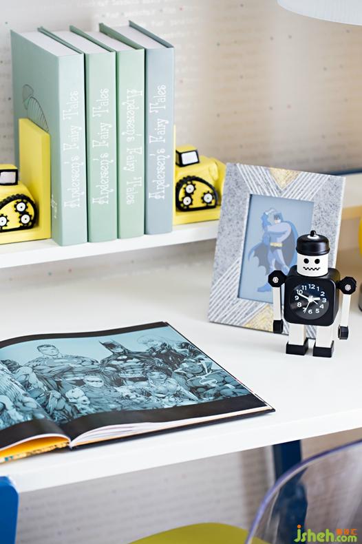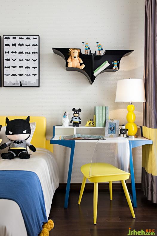 儿童房色调与整体空间色调稍有差异,设计师选择了高饱和度的蓝、黄二色,超级英雄系列作为崇拜感、归属感、安全感的集合体,为活泼跳跃的空间氛围注入一丝安定、宁静。设计公司