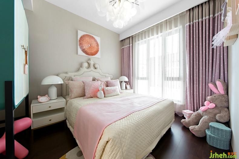 卧室是空间中的舒适场域,色调上保持温馨的连贯性,明朗姜黄色、奢华耀眼金色、可爱活力粉色为空间带来真实可感的轻快。