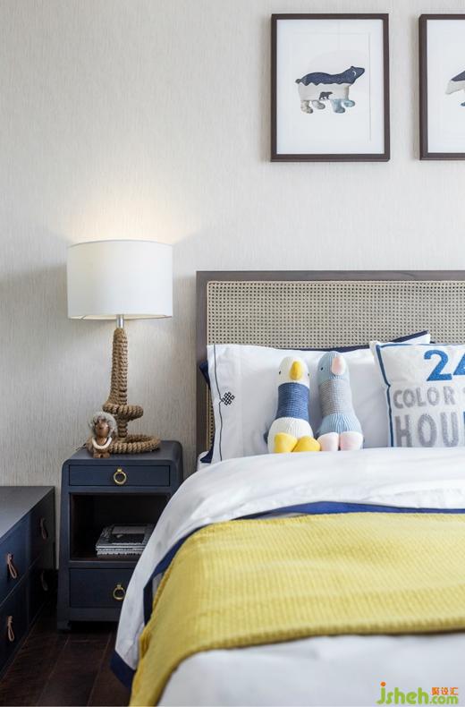 偶然出现的海天蓝及柠檬黄点缀了次卧,得意而不忘形,依旧是明朗的主色调。阳光、空气、风景适时流动,生活的痕迹渗透进去,长出像花一样的纹。