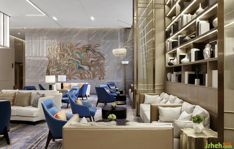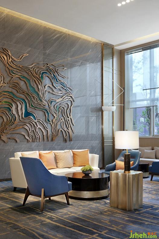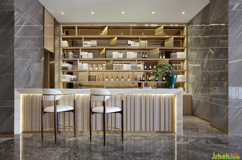 如流水一般清澈隽永,又如阳光一般明媚多情。洽谈区以胡桃木饰面为主,保留贵雅去其繁丽,局部采用皮革、大理石、拉丝古铜作以点缀。