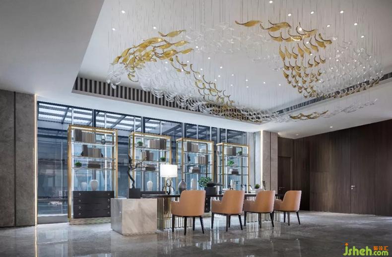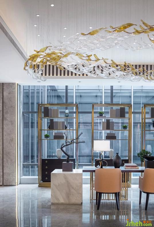像是一场秋天的童话,悬挂而下的水晶吊灯随波荡漾,树在伸展它金黄色的枝桠。