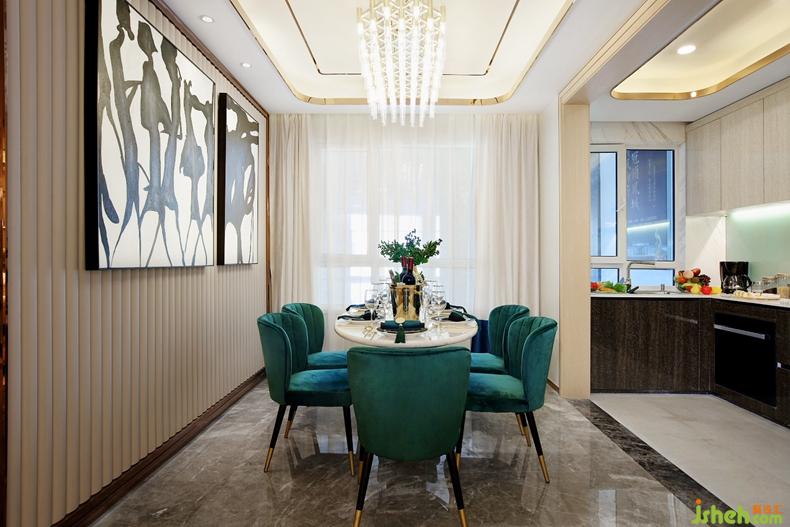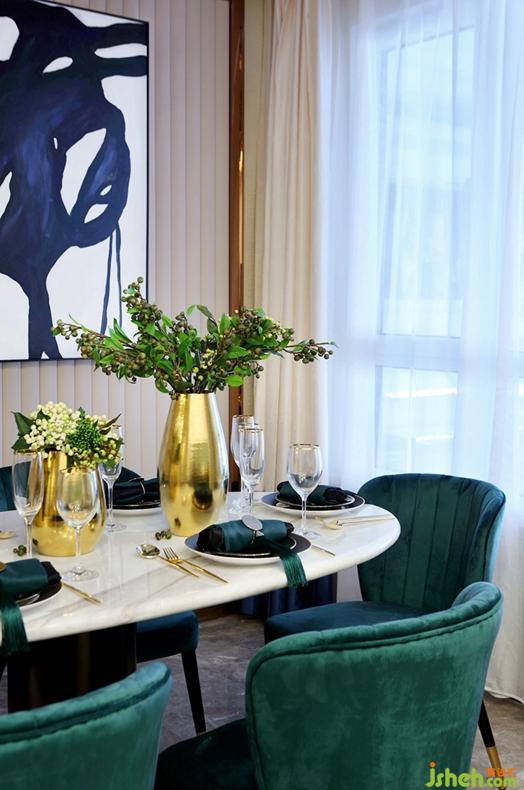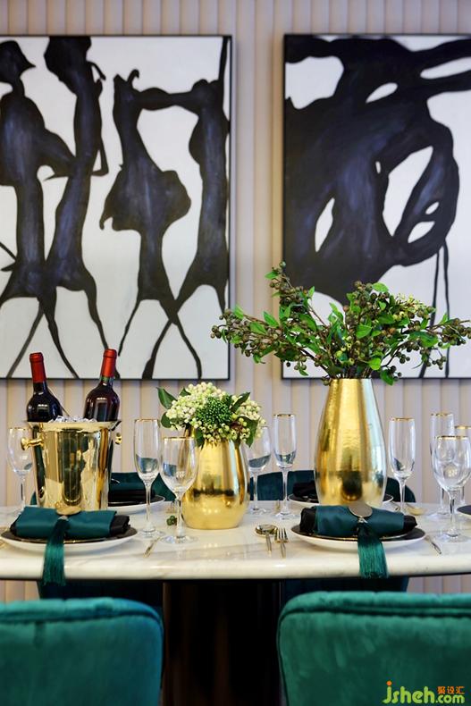 富有韵味的天鹅绒餐椅与金属元素加以调和,极致的奢华魅力更是无法抵挡。