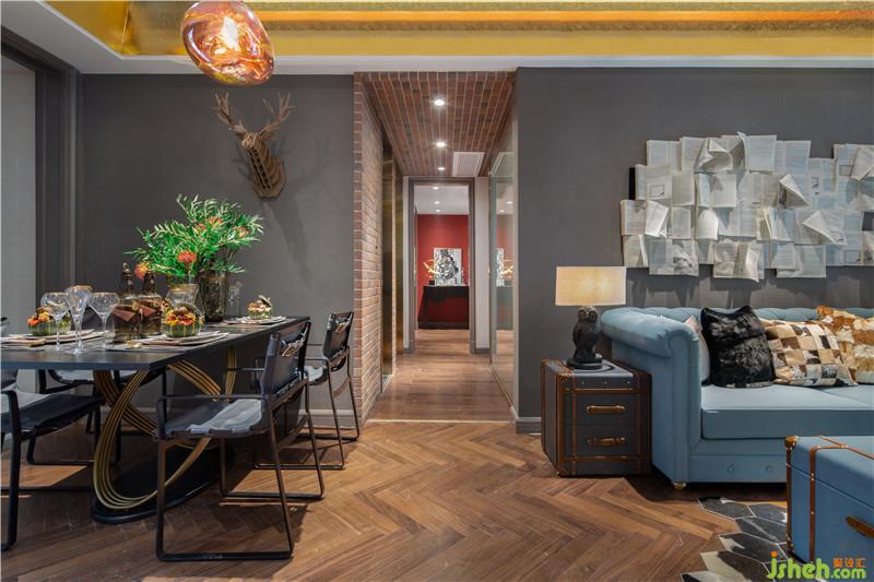 将复古的灰色,高贵的蓝色融入空间中,金色天花镶边加粗线条勾勒出空间层次,分割大空间的同时,搭配古典魔力的艺术雕塑,是别具一格的设计格调,也是艺术馆般的魔幻气质。深圳装修公司