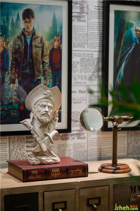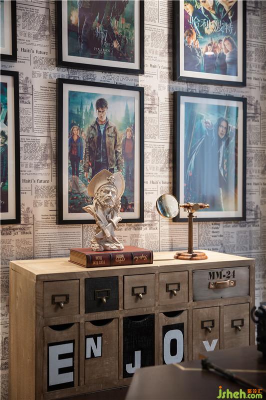墙面铺满复古式报纸样式的墙纸,让人不由联想到《哈利波特》中的预言家日报,各类英式精致饰物为空间更添英伦气息。深圳装修公司