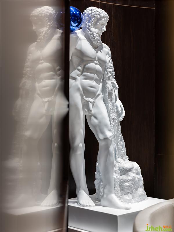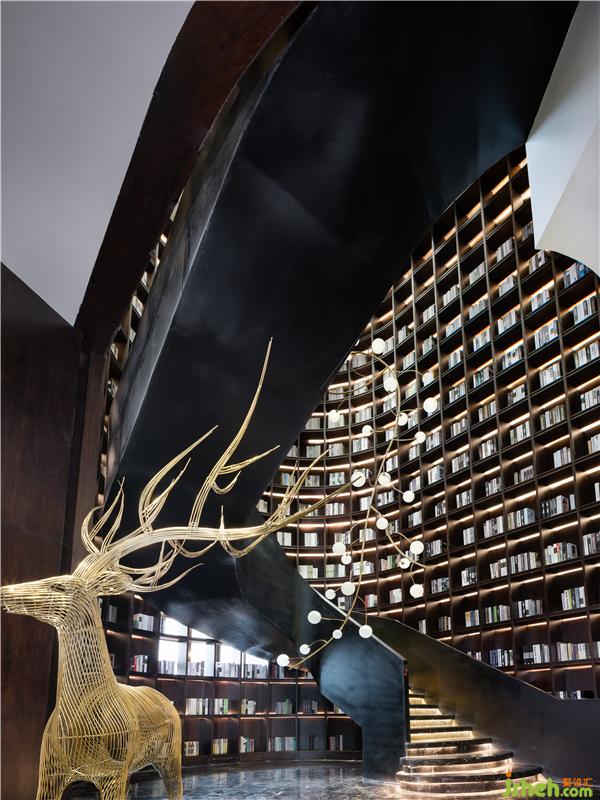 阶梯旁的鹿惟妙惟肖,灵感取自日本雕塑家的作品《我的梦想是一棵树》,于是自天花垂下一枝藤蔓枝干状吊灯,携一树光华与缤纷,仿佛置身在万籁俱静的星空下,去捕捉令人神往的梦境,拾级而拾星的空间体验,营造出点睛般的英式浪漫。