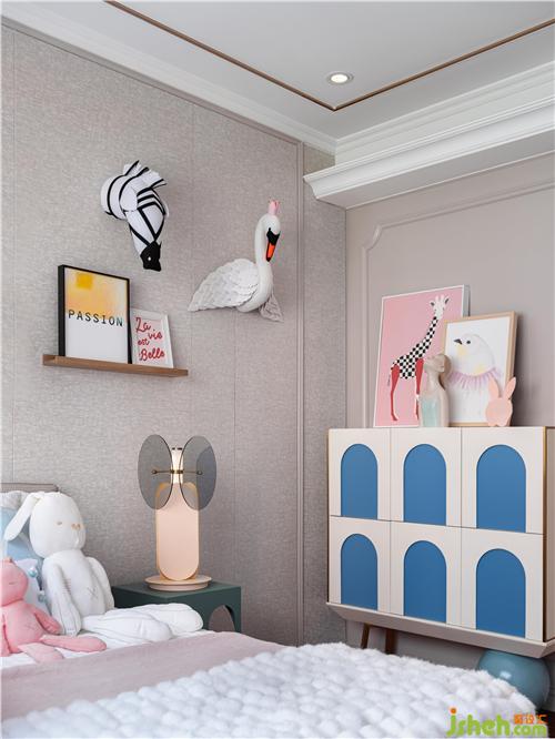 步入女孩房,感受到的是夏日里的甜蜜。好似随风摇曳的桃花,让粉嫩的咿呀时光幻化成了一支古典小调。样板房设计
