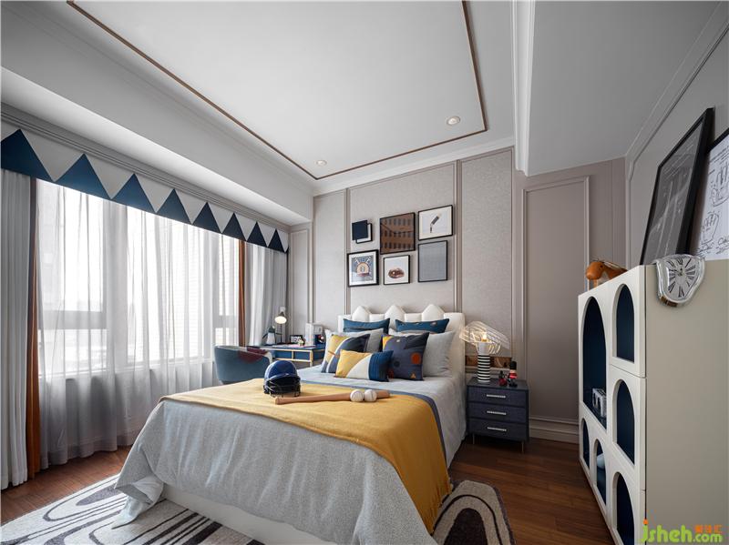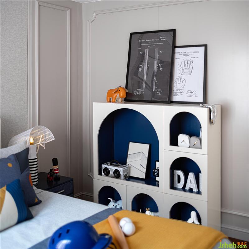 男孩房以棒球主题为陈设亮点,是运动的热血,是追求的梦想乐园。夜深人静,男孩终于在梦中赢得了那场意难平的比赛。