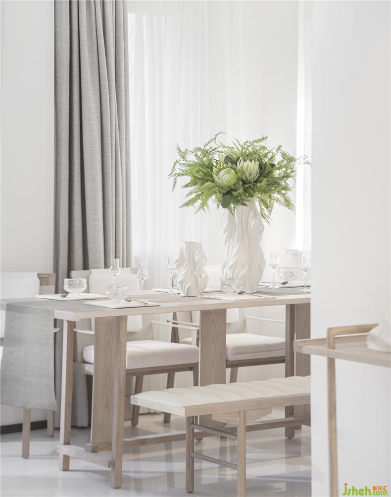 现代主义与自然材料相结合,营造出淡泊的空间磁场。样板房设计平静的线条,造就均衡的秩序,这种清晰、明亮的结构,带来恒久的美。