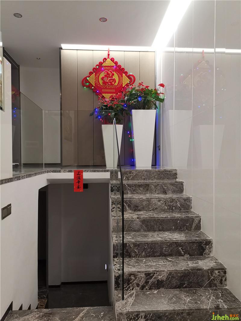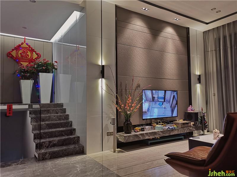 本项目位于肇庆市端州区中源名苑花园小区,主要打造以错层为主打户型不同于周边楼盘格局为优势,突显出空间错落层次感。本项目以灰色调的现代、时尚、低奢风格为设计手法,体现出业主对低调而休闲的生活追求。简洁的黑钢条线,设计独特极富个性的啡色硬包与黑钢搭配,硬朗而有品质,理性而有趣味。进门后拾级而上,清透的玻璃犹如直接插入优雅的大理石阶梯里般,简约而脱俗,让人不禁要驻足观赏一翻。而电视背景墙没有以张扬的石材去表现,设计师正正是想体现业主低奢的生活方式,所以用了低调的啡色硬包修以两侧特殊造型的黑钢装饰,让人一眼就洞悉出设计的用心和别致,背景两侧的白色微晶石中间镶嵌着发亮的黑钢,不禁发出一线光芒,犹如申述着平淡中不凡,让人不要遗忘它的低调却奢华。整个大厅仅仅在楼梯两侧墙面运用了大面积规格不一的竖线的纯洁的白色微晶石来点缀提升出钢与硬包的活跃度和灵动感,让它们不会让空间变得沉闷,明亮而夺目。精细的黑钢线条更是让人觉得质感不凡,极窄边框造型的厨房趟门更是设计师严历要求下的产物,高贵而不可方物!再重温进门的唯一木饰面的隐形房屋大门墙与装饰柜一气呵成的效果,与钢质、硬包、洁白的石材,相得益彰,完全融化了整个原先冰冷感的空间,带来一抹木质的温暖。室内设计师
