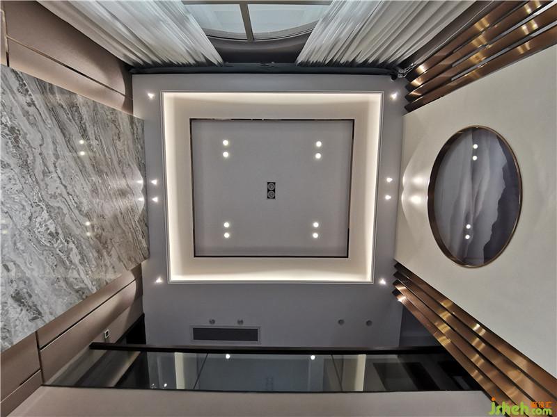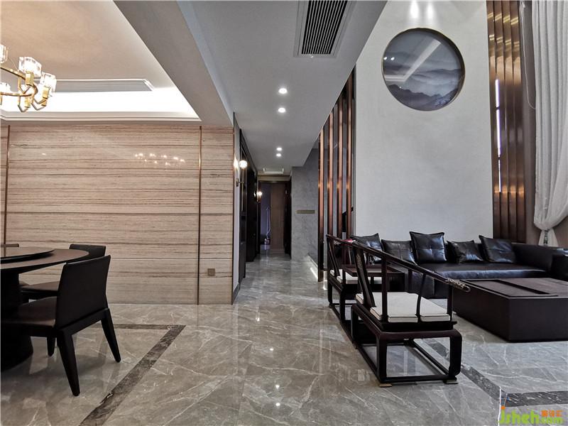 本项目面积为270方三层复式中空大厅户型。风格定为现代时尚的新中式风。业主为职业教师,对美艳的新中式风尤为喜爱,设计时在现代时尚的手法上仅在意境上体现着简约中式的表达方式,让人既享受到时尚的优雅,又感受到中式意境之韵,格调显贵。本案例运用了大自然的天然石材-白金沙,该石材无论色泽或是纹理都浑然天成,一气呵成,大气灰宏,给人视觉冲击甚为之高。整体空间均辅以奢华为代表的玫瑰金不锈钢为装饰线条,提升出时尚而奢华的空间氛围和品位,两侧6米高的不锈钢造型屏风以斜角45度为摆向,正如展示着主人趟开双臂欢迎宾客一般,热情,友爱,无比活跃。沙发背景墙面留白的处理,中间镶嵌了一个整圆以美伦美奂的不锈钢为边,透着抽象的高低起伏的山群玻璃造型,正如每逢月圆人团圆的意境,更是增添了一份中式的神韵在此。室内设计师