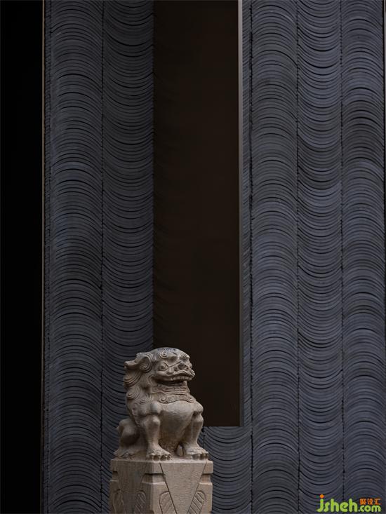 水墨画线条勾勒出起伏的山脊线,设计以意造形,提取传统建筑中的瓦屋顶、坡屋面元素,营造出当代语境中的山水意象。青瓦、旧木排列重组,具有想象空间的留白,儒雅的书院气质浑然天成。新的介质参与,使空间与旧街区产生一种新的关联。