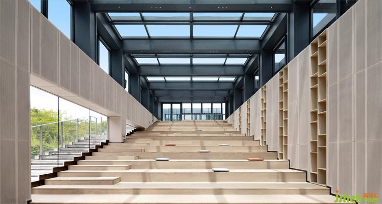 通透的落地幕墙模糊室内与室外的界限,科普教育馆设计让阳光与自然最大程度流入室内,身临其境感受自然的魅力,通过物质的透营造空间组织的透明性。