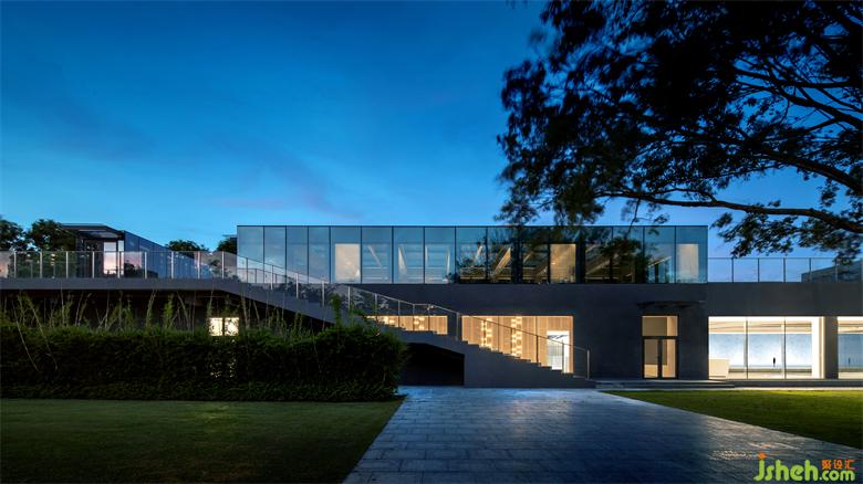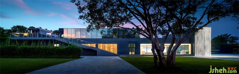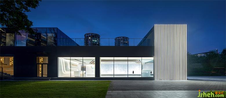 科普教育馆设计师将原有建筑拆解、重构,将若干个盒子连接构成建筑主体,完成了部分区域由室外转化为室内空间的过程,盒子的相互连接最终将原建筑散落的碎片式空间融合为统一、整体的展示性室内空间。重构后的建筑主体宛若发光的盒子,在暮色中散发光芒。