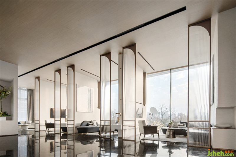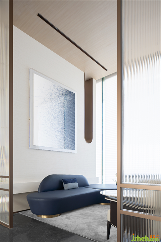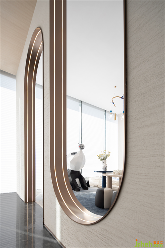 样板房设计从最初的无形观念转为有形体块,而艺术又通过设计巧妙的将其以无形的概念予以呈现。空间材质不再成为泾渭分明的界线,而成为自然沁入生活的审美锚点和搭配乐趣。