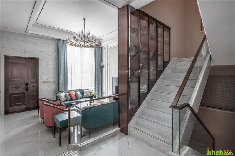 本案位于位于风景秀丽的云浮六祖故乡西河岸边。业主是三代同堂,六口之家,男主人是企业高管,喜欢简中风格,女人主人是艺术家,喜欢简约轻奢风格。所以深圳别墅装饰设计师融合了夫妻双方的对装修风格设计需求,选择简中轻奢风格设计本案。材料上选择比较安静的大理石砖,石材,墙布,灯具选择轻奢风格装饰灯,配以简约中式的家具和简约中式的装饰画,营造出安静、祥和的居住空间。