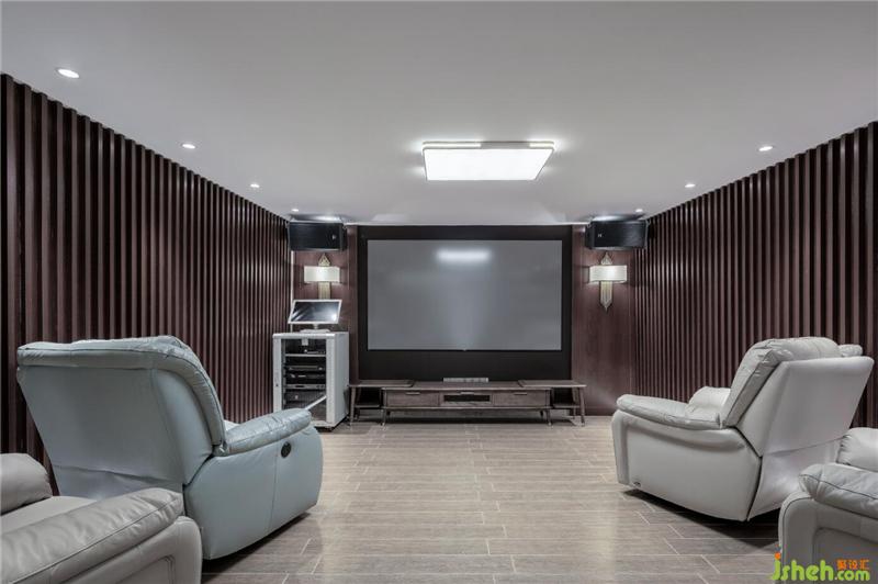 本案空间布局上较原建筑平面有较大改动。负一层设计了影音室。