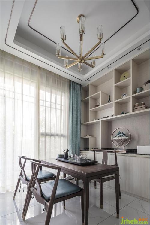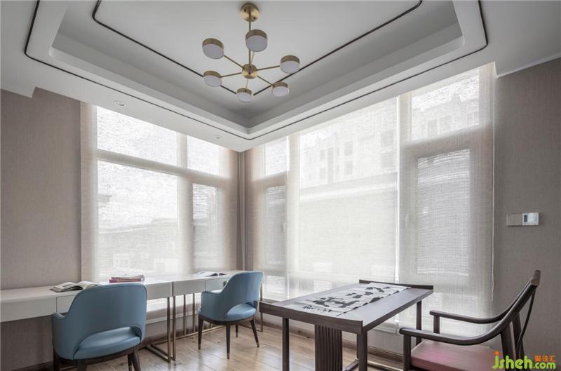 一层客厅和餐厅都独立空间,并且在原餐厅阳台位置往外拓展了独立茶室深圳别墅装饰,并将原老人房和厨房位置对调,这样老人房可以做成一个带卫生间的套房。