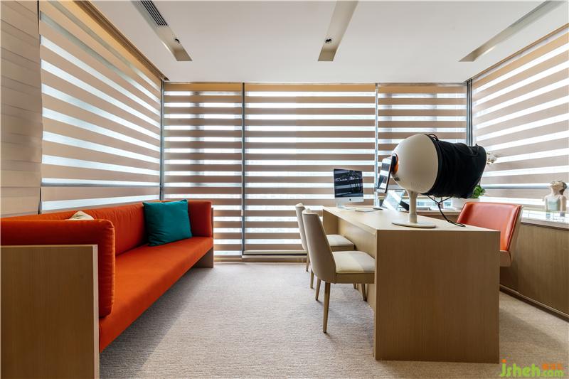 空间布局上:本案是由200平米大平层住宅改造二层,故在空间布局上稍稍受到格局限制。但是设计师还是精心打造了前台接待区、等候休息区、美容顾问室、公共卫生间、美牙室、头皮管理室、桑拿房、调料室,以及2间双人美容VIP,2间单人美容VIP,其中单双人VIP各有一间带独立浴缸。