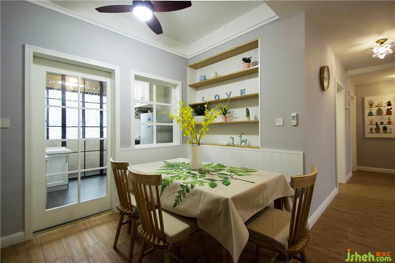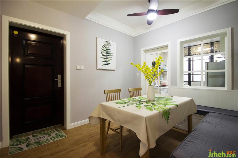 墙上的金星蕨挂画与桌布相呼应,风扇吊灯么......为实用考虑啦~