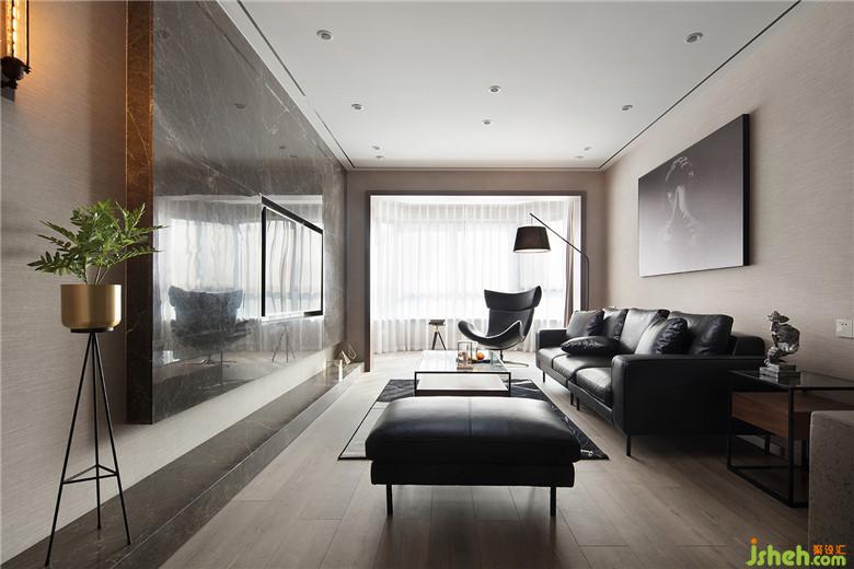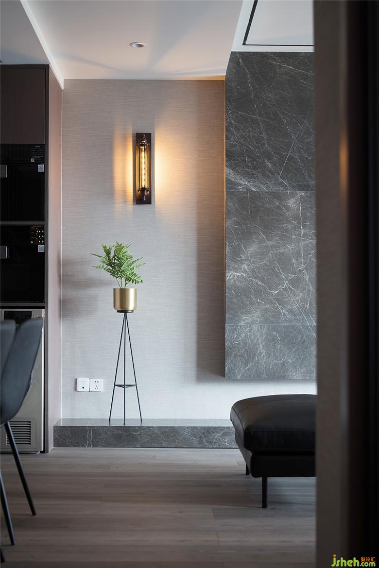 室内设计师以黑色、咖色作为空间的主色调,在视觉上协调统一。着重突出石材、皮革、墙布这几种材料的质感。以达到“简约而不简单”的效果。