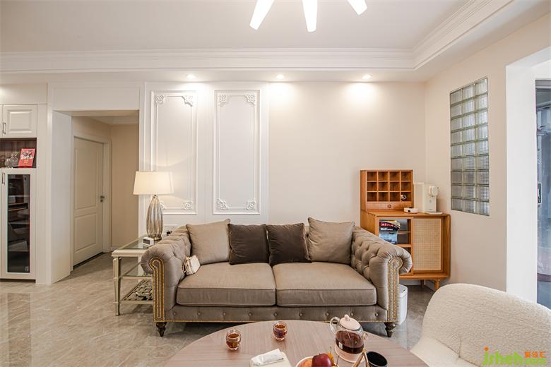 在客厅区域,设计师选择淡色作为墙面主色,运用不同材质搭配立体感,室内设计师为整个空间铺垫低调优雅复古的基调。