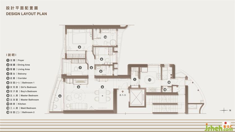 单位共有三房,虽然各家庭成员均拥有自己的私人空间, 但由于两间孩子房的面积存在一定差距,为公平起见,设计师 借着重塑走廊及扩大主人房以拉近两房空间。 主人房后向邻房扩展后,床尾位置新增了独立衣帽间,配合白色的趟折门,低调地融入于墙身设计之中。香港豪宅设计面积广阔的主人房套厕,面积与睡房相若,加上内里阳光 充足,所以设计师采用了橙色玻璃和1米2的大幅墙砖为空间平添活力朝气,并且平衡户外的明亮日光。