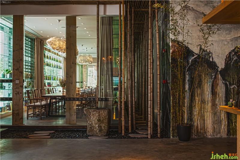空间采用可分可合的功能布局,四个包房可以根据不同的需求而组合,大厅也是一个演播厅,抬高部分即是舞台,可以组织文学沙龙、文人雅集活动,整个餐厅也是个小的展馆,墙壁上、木隔断上可以悬挂挂画或艺术品,灯光可以根据需要进行调配,已成功举办几期颇受欢迎的人文雅集活动,饮茶饮酒,抚琴赋诗,一同穿越回古人的生活方式中。餐厅设计