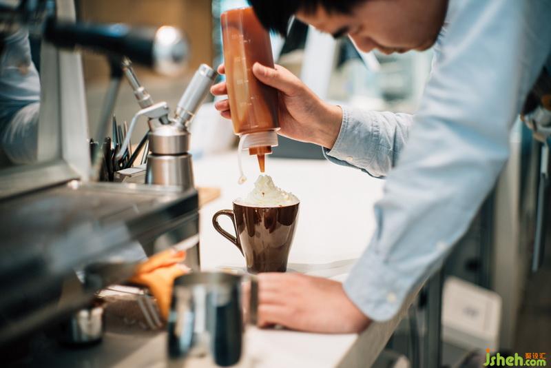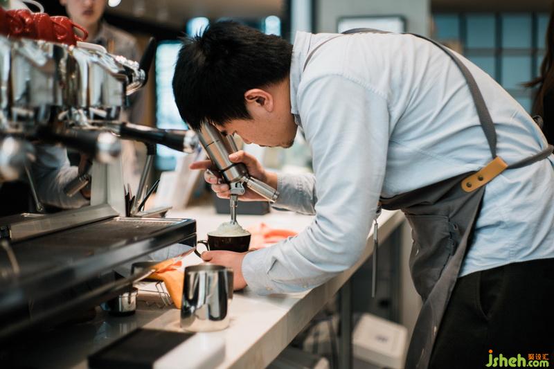 推开玻璃门,阳光透过绿色玻璃照在屋内,空气中弥漫着咖啡的香气,暖色调的灯光,音乐舒缓的流淌……