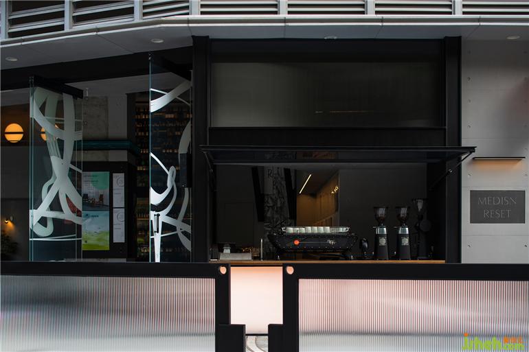 入口的处理,有意识地强调空间的社区属性,使得空间与周遭环境形成紧密的嵌入关系,并在内部空间与外摆区域以及城市的街道之间,营造出一种明显的张力。街道和外摆区之间没有明确的物理分隔,使得这处空间成为城市公共领域的延伸,一处由社区街道向空间过渡的引导区域。尤其在夏季,当6扇折屏玻璃门全部被打开时,这种过渡显得更为亲切自然。