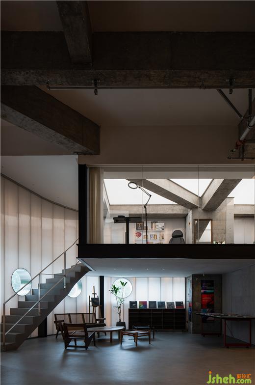 于是,空间在一系列连贯的图像与感知体系中,将顶部、横梁、立面、楼梯等复杂性统一进空间序列,实现空间多维的层次感以及各层次之间的丰富性。