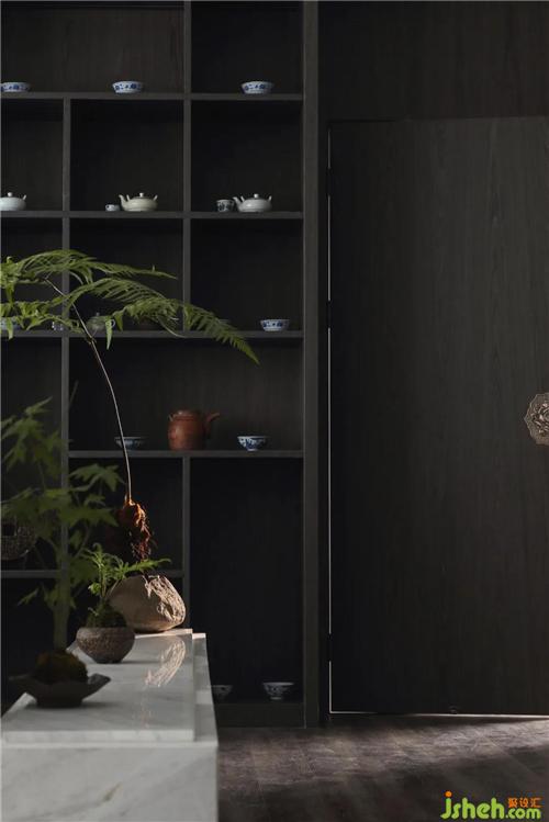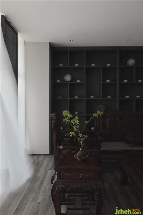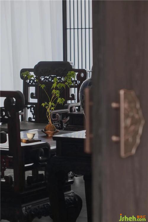 业主收藏的明式家具和展柜里的古瓷器具陈设,南京办公室设计呈现有序的空间美感,营造古今结合、雅俗共赏的氛围。