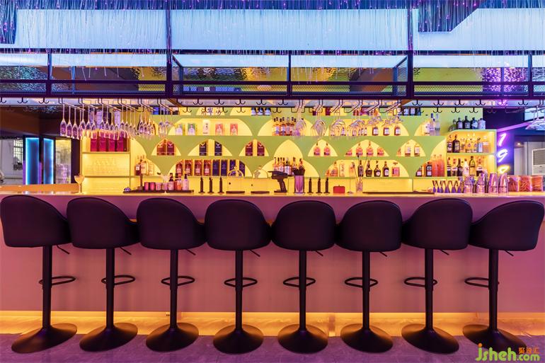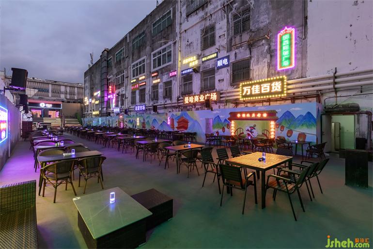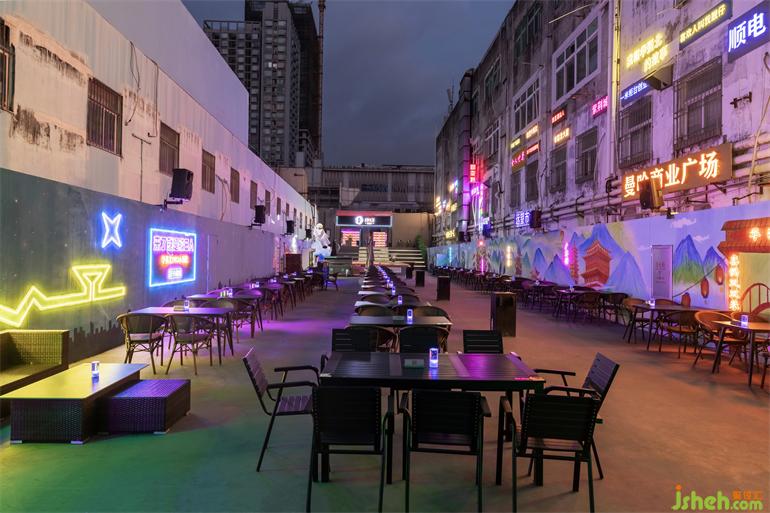 酒馆的室内环境现代而充满欢乐,在深圳这个拥有着年轻血液的城市中开辟出一个。棋牌室设计师将其定义为一个不断变化的环境,从而可以满足一天内人们晚上的不同需求,从小吃到宵夜和酒饮,为顾客们提供全天候的饮食,更为他们创造出一个全天候的共享式体验空间和活动空间。这座小酒馆充分利用了华强北的步行街,设置了一系列让人想一探究竟的室外座椅。值得一提的是室外的霓虹灯,这个霓虹灯在整个酒馆设计中建立了一个反复出现的主题:即将室外元素带进室内,反之亦然。使梦人回华强北1983那个基工建设最火热的年代