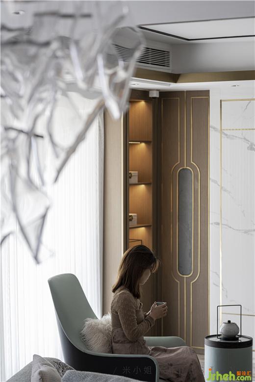 金色的包边透露出干练,米灰色的布艺和原木框架相结合,软包设计让躺或坐有更舒适的体验,家装设计以简驭繁,没有过多元素堆积,整体空间意境衬托出无限中式韵味将西方的设计美学与东方古典美学融合淬炼,传达了一种东清西韵的独特风情,时尚不失雅致,给人舒心简美的感觉如江南水墨般清新淡雅,干净利落的线条设计,时尚禅意之美。
