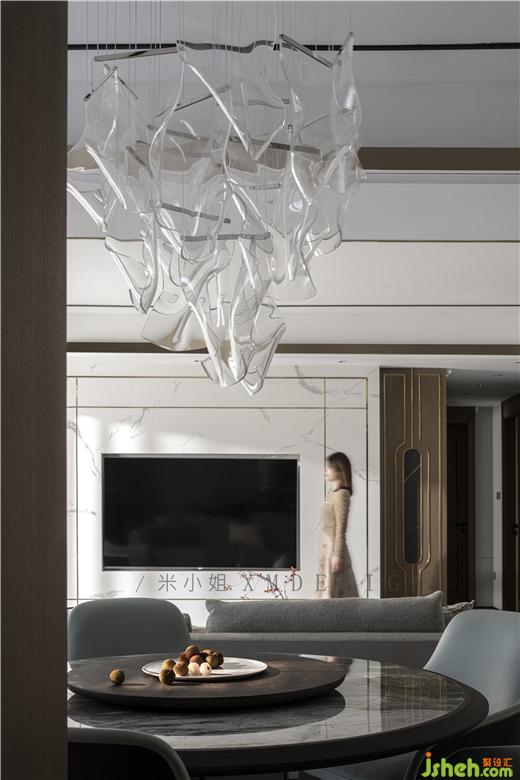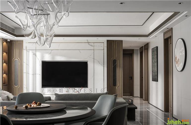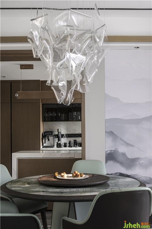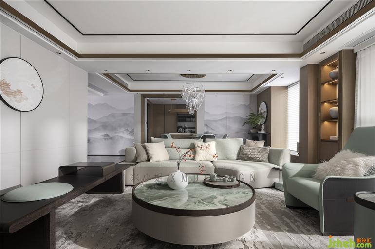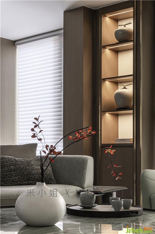 客厅采用对称设计,家装设计没有过多的色彩修饰,保留原木的线条感,塑造纯粹娴雅致质感。流畅自然如高山流水,于不经意间流露高级质感,打造时尚禅意之美。