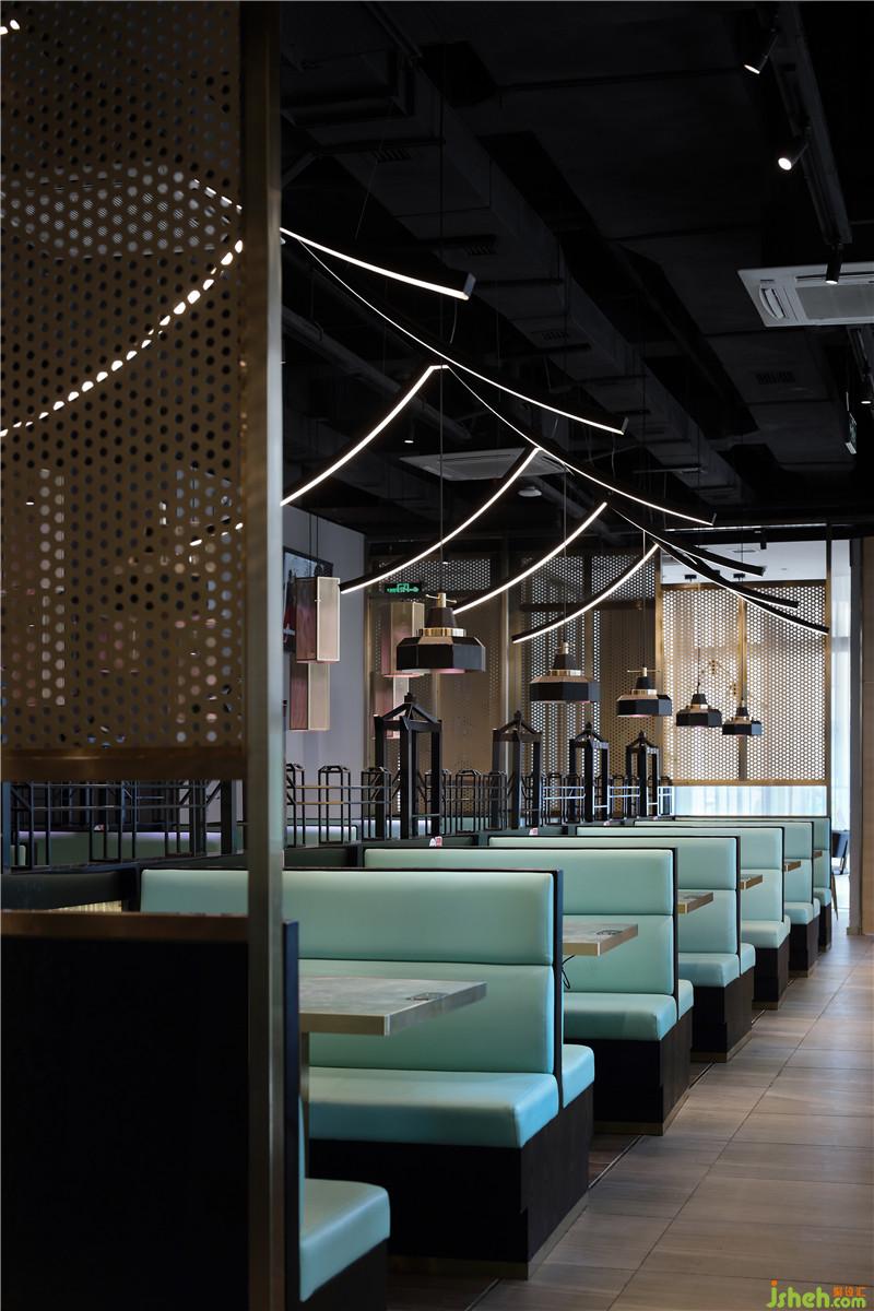 风格理念:本案餐厅以汕头牛肉火锅为特色,因此餐厅的设计从当地传统文化、地标性建筑、风景中提炼元素。并进行分解和重组,运用现代的语言来表现,将传统与现代融合在同一空间内,创造出一个独特的用餐的空间。餐厅设计