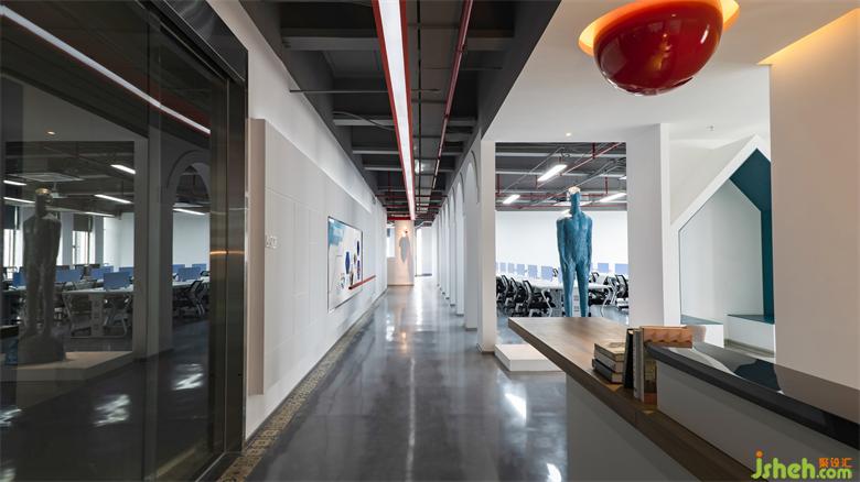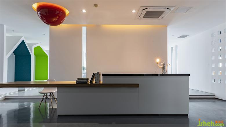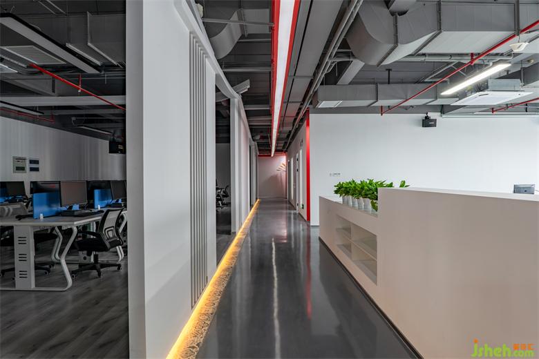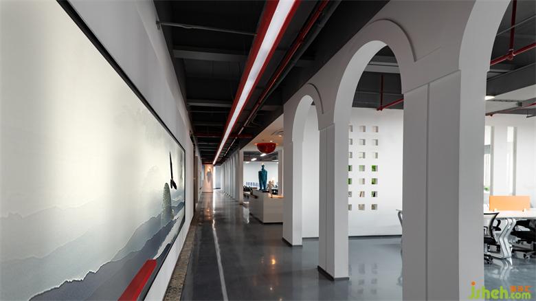 办公室设计师引用闽南建筑的传统元素为设计脉络,以新时代的审美气质,设计和构造一个新的空间体验感受,作品整体空间呈现出独特的对称美,亦不乏张弛有度的变化,将闽南的燕尾脊、五行山墙、骑楼、花砖等元素加以提炼,运用于空间,使空间不经意间流露出兼容并蓄的闽南精神。整体设计装饰简洁,通过大面积的灰色和白色,即纯净和简约的色彩,形成了最具沉稳理性的气质,中间连贯穿插的中国红,不仅让视觉温润,也点明了“一带一路”的精神内涵。