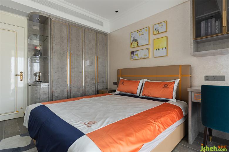 小孩房以米色为主要基调,充满活力的床品再搭配简单的挂画,彰显小孩天真活泼、率真的天性。