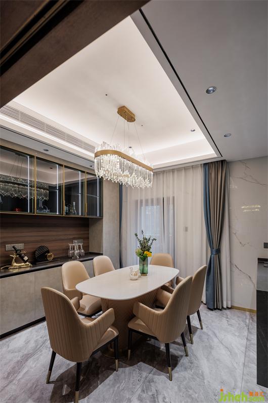 精简的线条,饱含奢华感,通过异材质的搭配,石材和金属材料恰到好处的结合,让客厅变得奢华美好,创造出一种更具浪漫、动感而又华丽纤细的装饰格局。