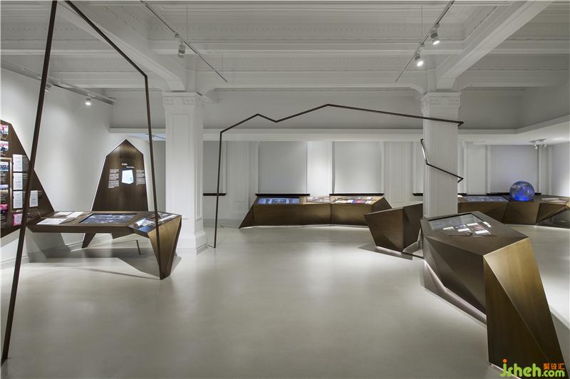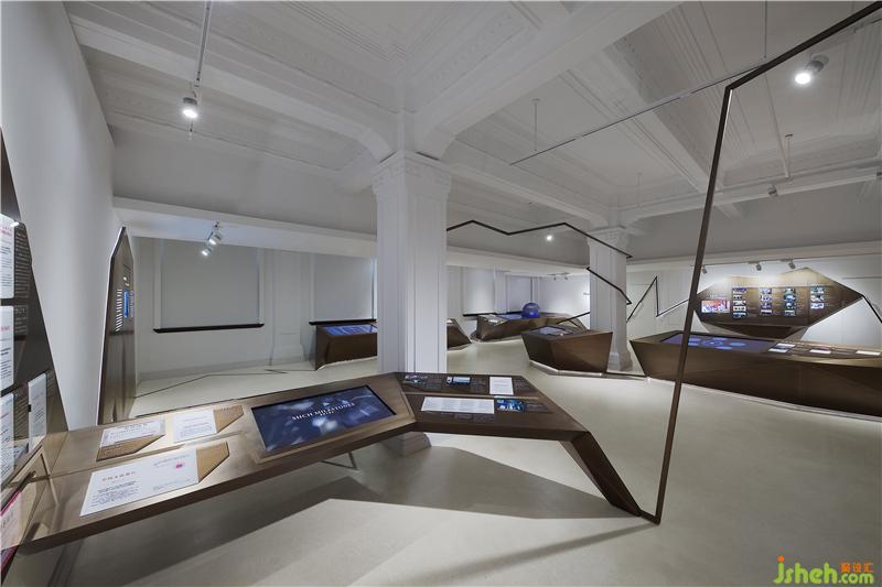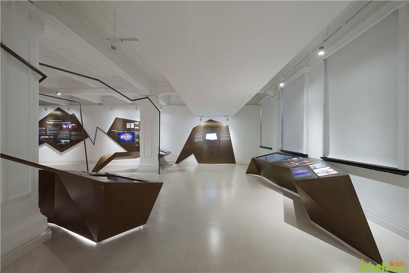 CROX闊合团队通过绵密的策展会议,学习复杂庞大的金融清算专业系统,分析建筑社会文史,逐步建构属于上海清算所的展览定位,提出WATCHER(守卫者)&VOYAGER(航行者)的策展命题。不同于一般的展览策划逻辑,清算所展示馆透过WATCHER&VOYAGER两种观点传达了上海清算所丰富的专业及历史含量。设计层面取材两英文单词的字首,以连续的W和V字母形象串接一道趋势线,形象地将其整合为金融业的通用视觉语言,穿梭在百年建筑空间中,时为主体,时为侧轴,营造展览的时代动感,在不同的展示区域,大量运用数码技术,将复杂的金融业务原理转换成时尚的视觉符号与互动科技。整座空间成为一座大型的装置艺术,包含入史料文物、影像纪录、实体模型、铜雕纪录等等,运用材质、灯光、文史论述、数码设计、空间设计等跨越不同的时代的设计符号,唤醒参观着潜在文化印象,触发认同感,形成极具张力的金融文创体,属国内少见的创新展示型态。装修设计