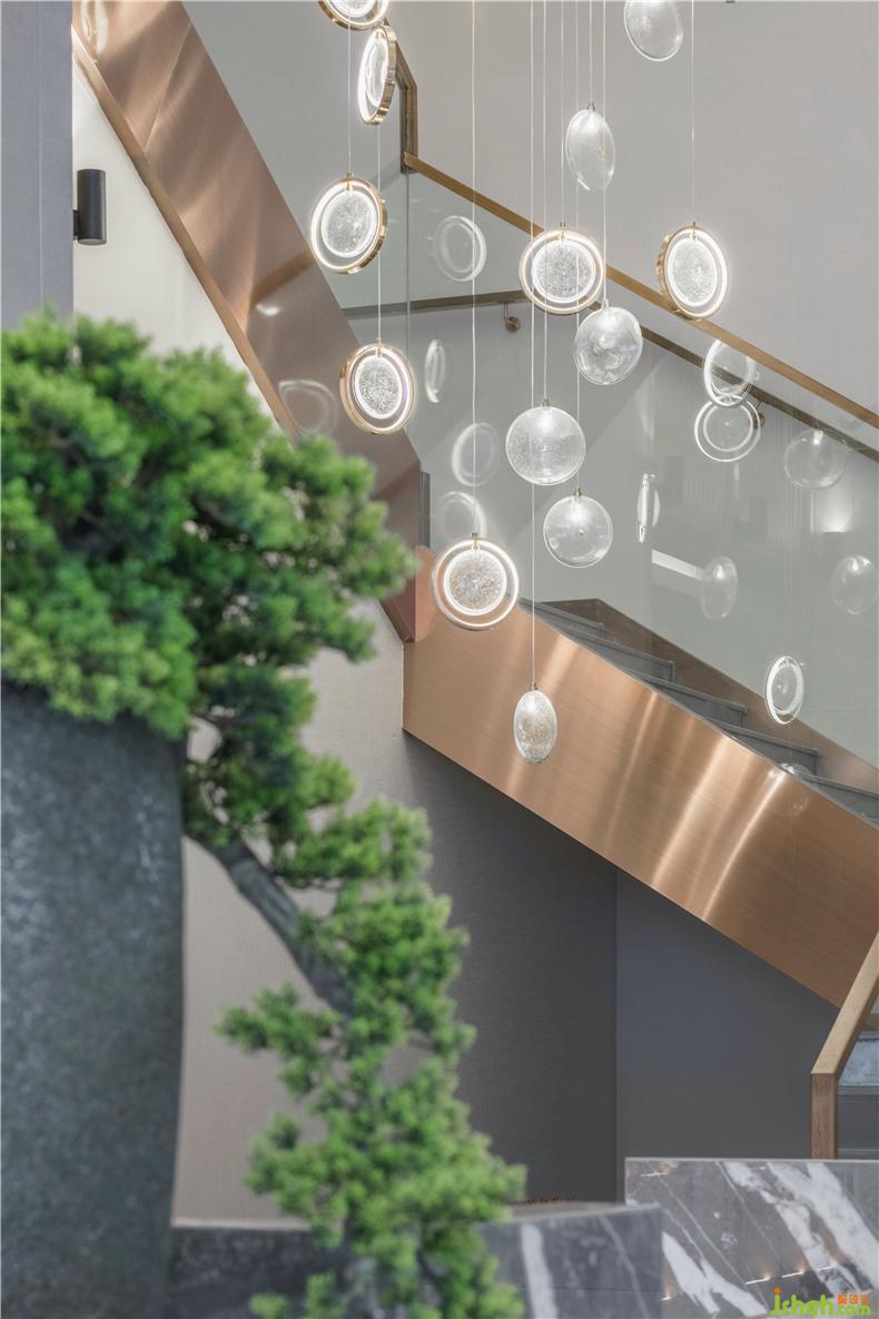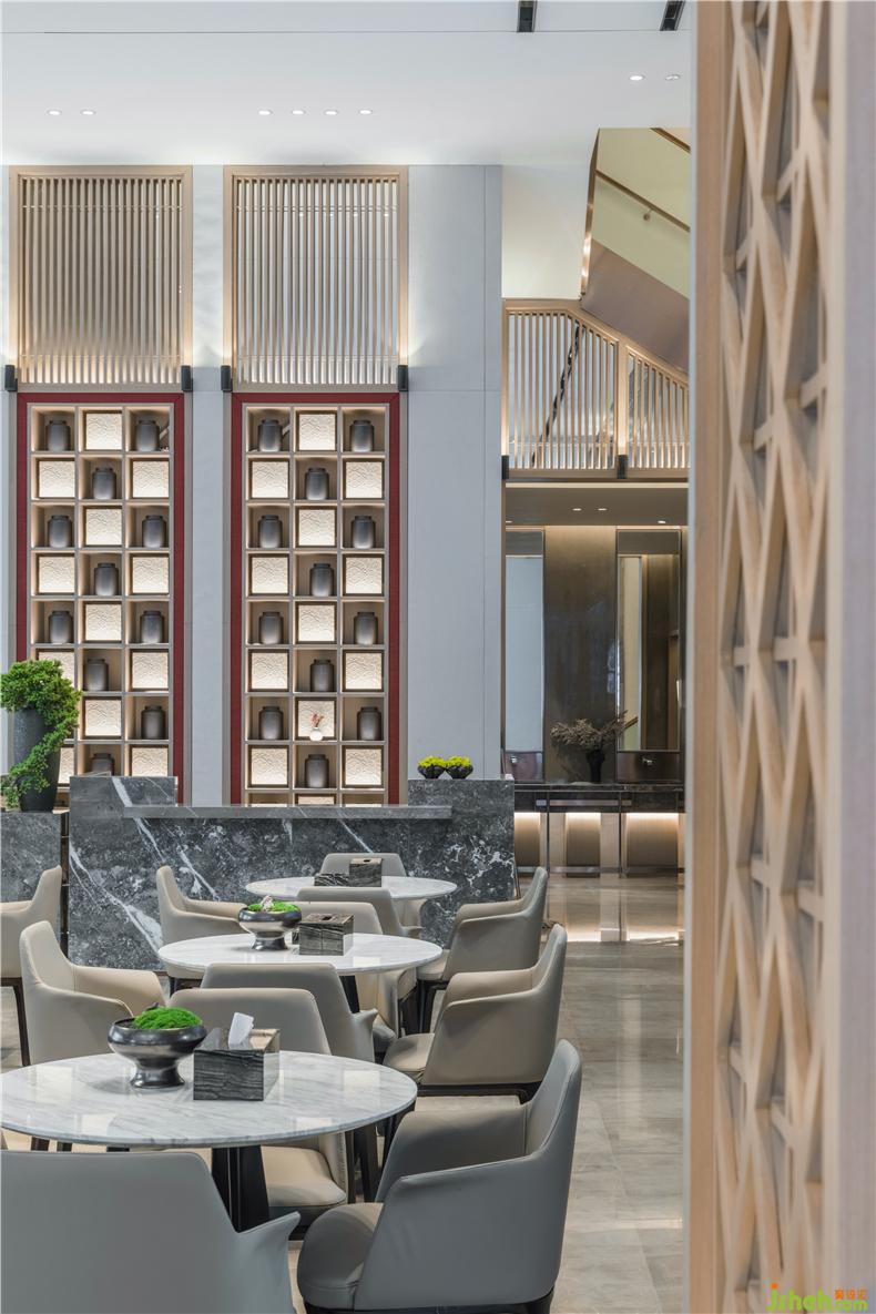 木是道家五行之一,销售中心以原木格栅作为构成空间的基本元素,疏离却有序,这为光提供了绝佳的游戏场所。在这个空间中,光不再是一种独立的元素,它与木格栅互为背景,相互介入,调和充盈了区域,装修设计也让充满生机的空间沉静下来,不急、不弃、不争、不显