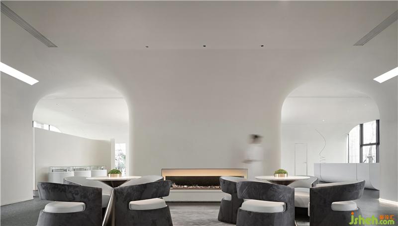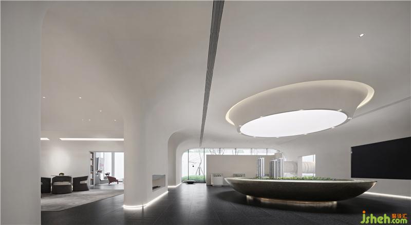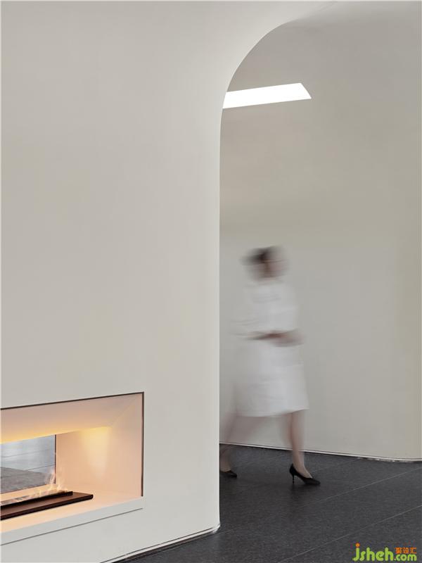 “美术馆”内大模型台身形成“伞拱”覆盖空间,使几何分界位置变得模糊,在形态上呈现出一种具有时间性的展览空间。