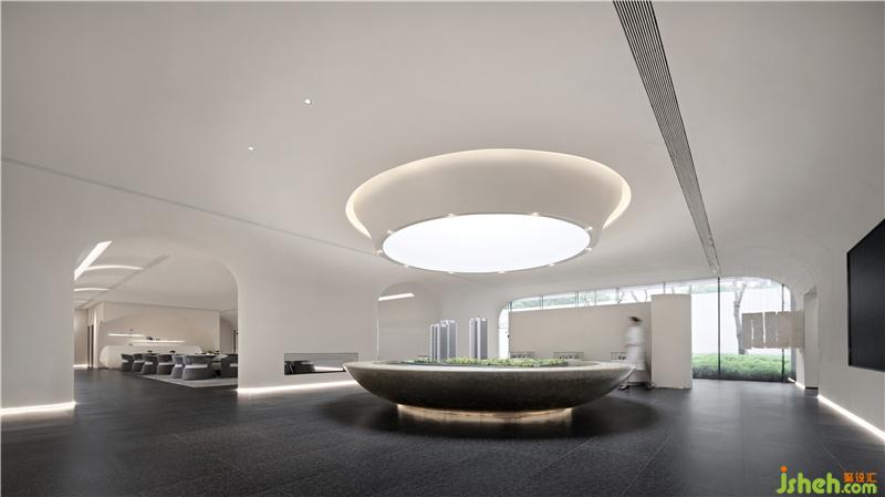 沙盘上的天花采用筒装的结构,引天光入室,纳入天地之韵律、造化之机巧,自然光洒在建筑沙盘上,充满仪式感。