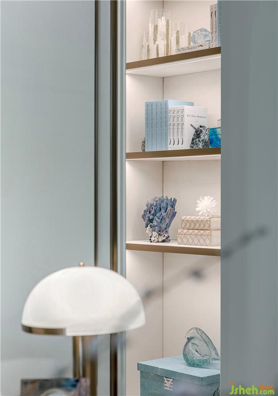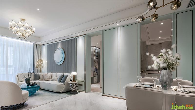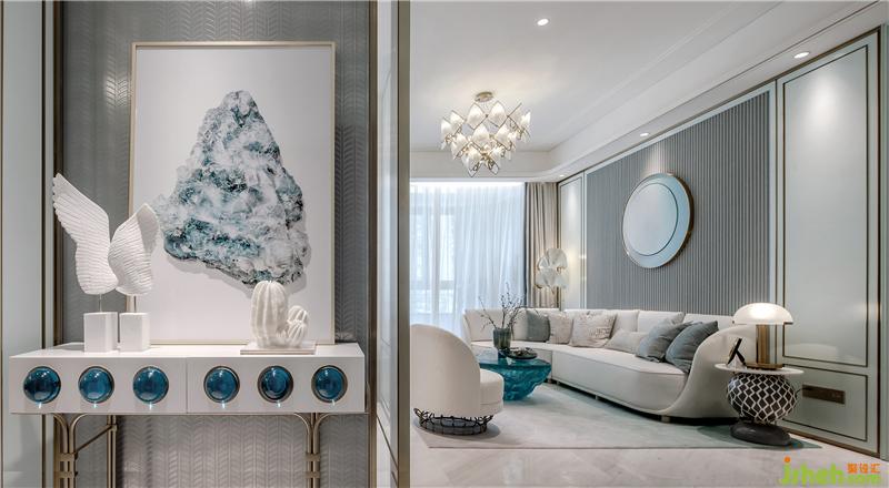 样板房设计入户玄关是一副精致细腻的背景画,搭配白色艺术摆件,现代人居住需求不仅要具备时尚美感,还要充满色彩艺术,就好像生活,既要有平静的时光,又要点缀意外的惊喜。这一抹巧妙的蒂芙尼蓝点缀在玄关,纯粹柔和清新灵动,足以装点一天的好心情。生活,需要艺术的参与。