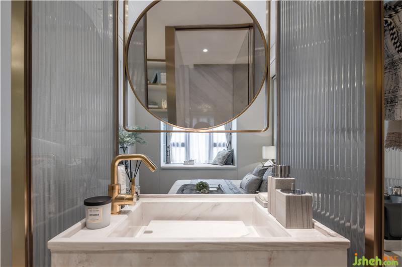独立的洗手台面和悬吊的艺术挂镜,无一不彰显独家定制的私享品质感。艺术空间给予了人们对生活的美好向往。未来家庭生活的憧憬让整个主卧空间浸润在蓝宝石般的幸福感之中。