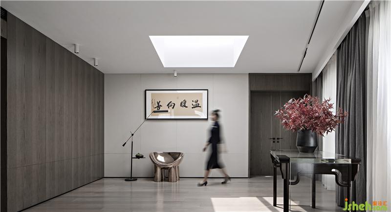 走进会所,即能感觉到设计师注重光影的表达,巧妙的天窗设计,将自然光引入室内,与会所的藏品《温暖向善》相呼应,自然中夹杂一丝神秘的东方韵味,让整个空间彰显出人文内涵。