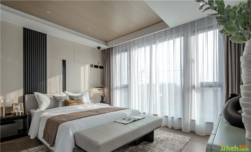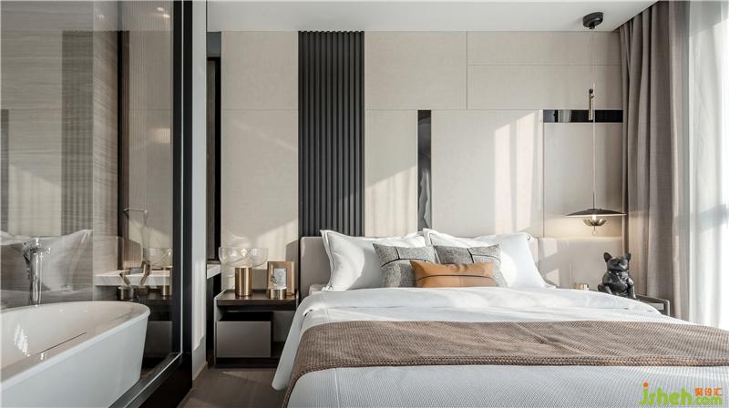 主人房简约并非舍弃细节,压缩美感。它是过滤不必要的繁复,回归样板间设计美学的本质,构思不过度浮夸或耗费,并反映对空间本质的尊重。注重细节的严谨,更要有整体的浑然天成。