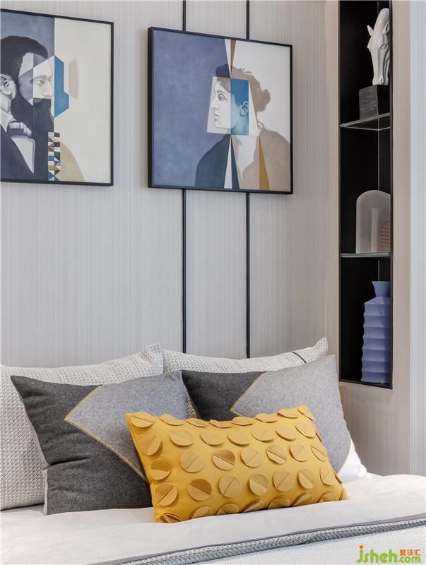 次卧室空间在软装陈设配合下,细腻情景的介入,映射出居者的日常情感,使功能与美学得到一个相互的平衡。